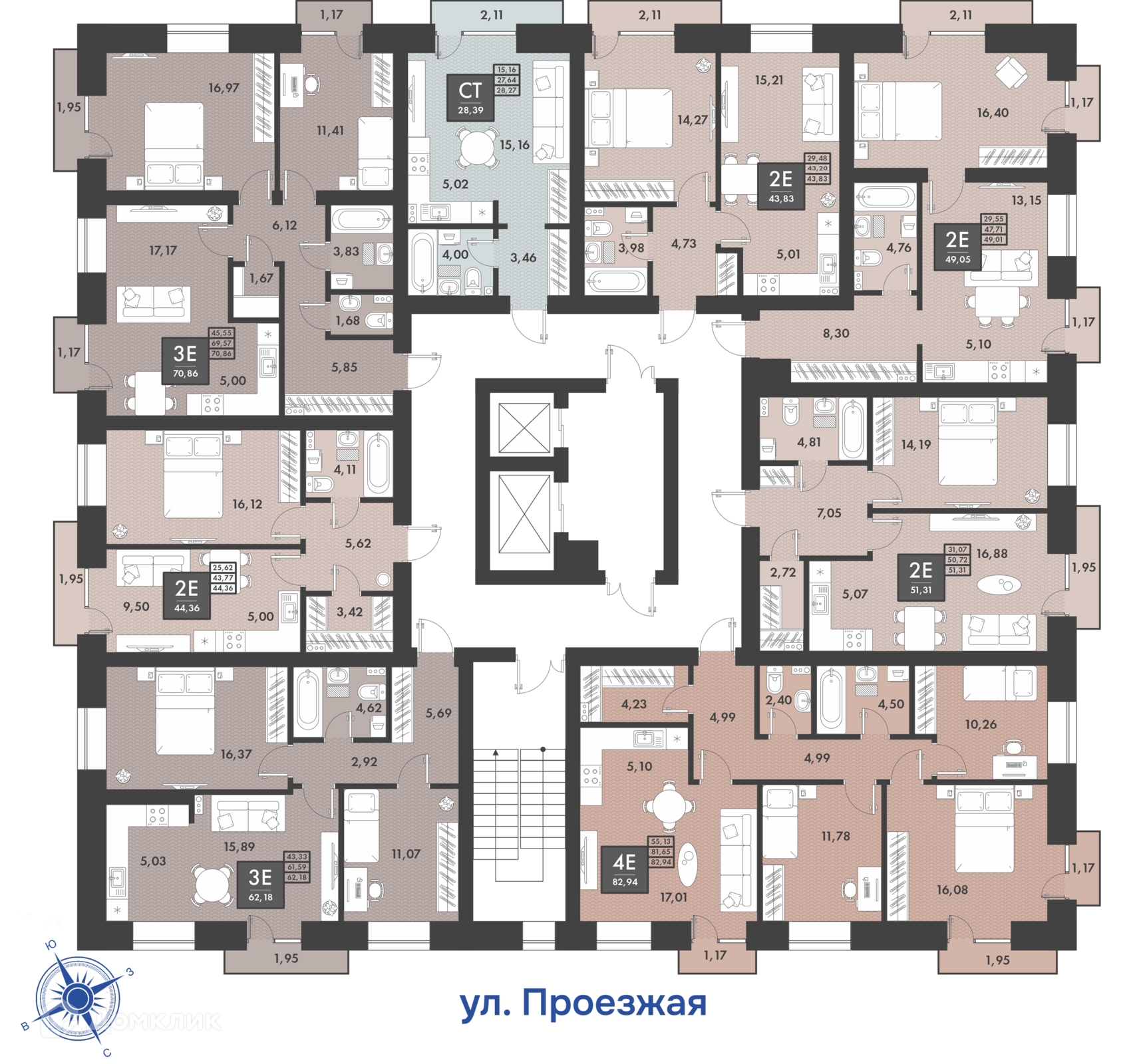 Площади квартир